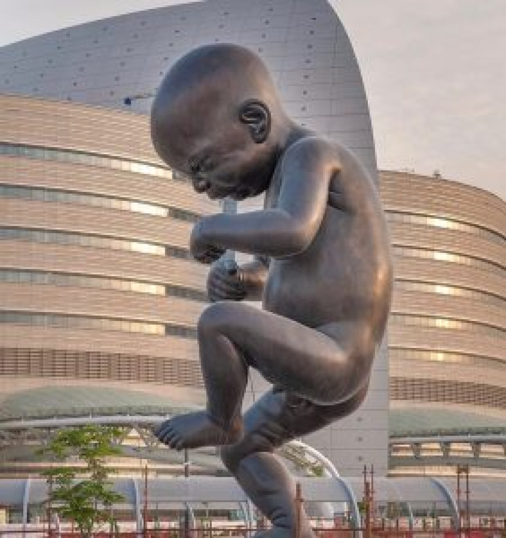 Designed by architect Cesar Pelli, who is renowned for designing some of the world's tallest buildings, the hospital has been specifically designed to promote healing. The dramatic glass and steel structure includes three atriums or 'indoor healing gardens' which can be viewed from all the patient rooms, as well as water features and art collections. Externally, the hospital is home to a provocative art collection known as 'The Miraculous Journey'. Designed by British artist Damien Hirst, the 14 huge bronze sculptures chronicles the gestation of a foetus from conception to birth, culminating in an impressive 46-foot-tall sculpture of a baby boy.