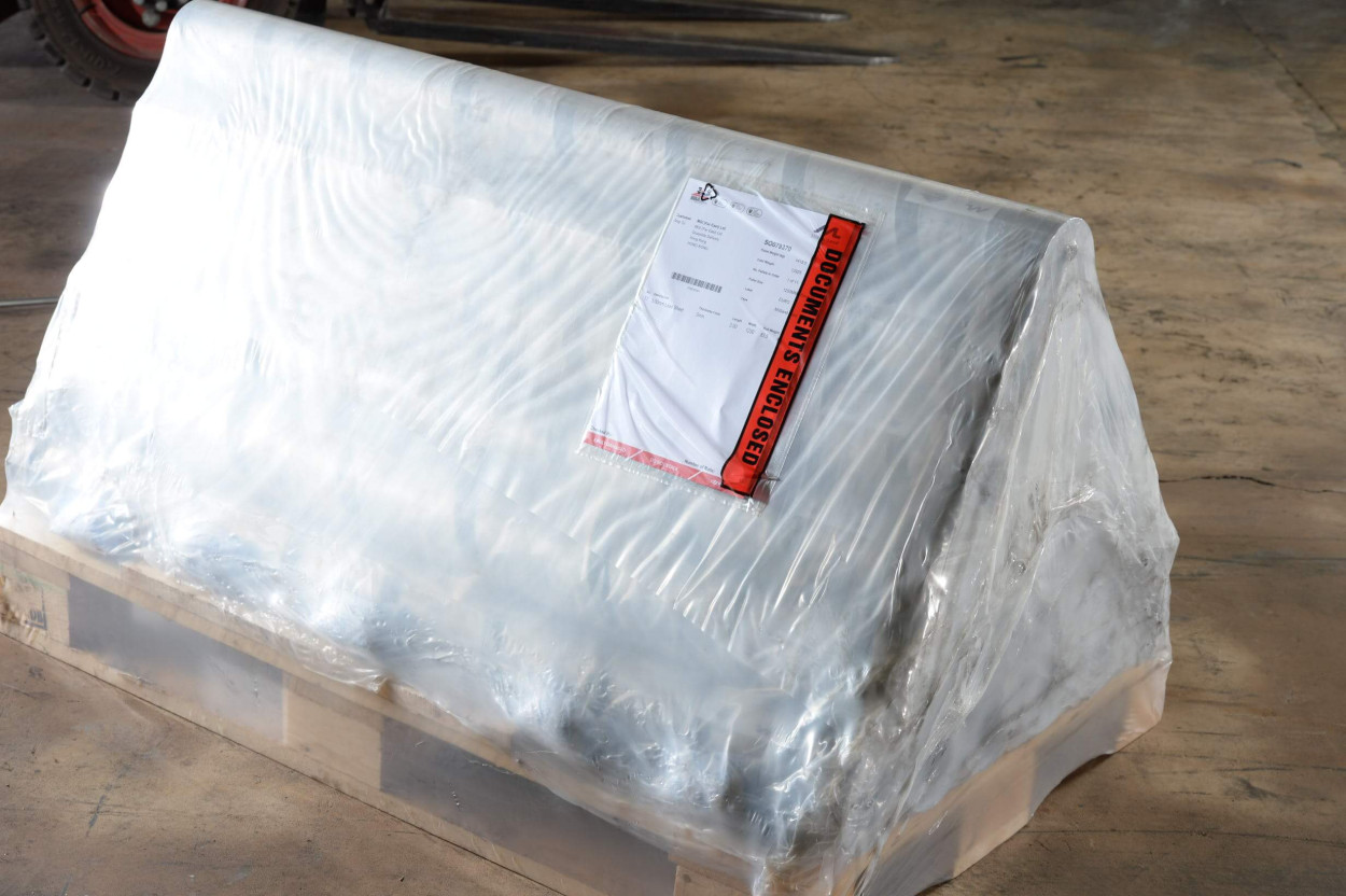 Documents are enclosed on the outside of the pallet
