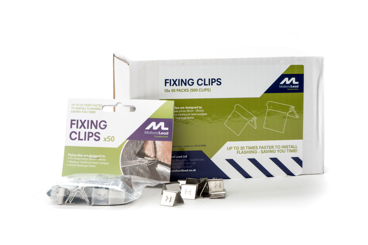 Midland Lead high tensile fixing clips make it easier and quicker to fix lead joints into masonry joints. ‘V’ shaped for easy insertion, the joint fixes lead in place in seconds.
